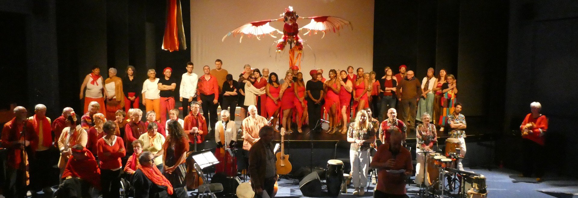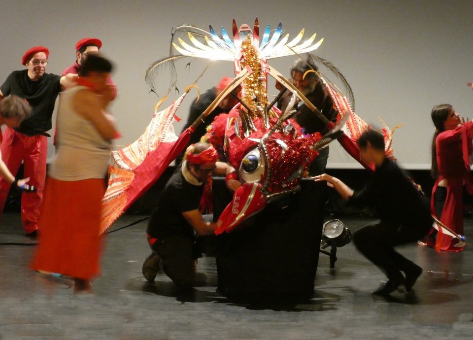 Les différents ateliers ont offert au public un spectacle cohérent, plein d’énergie et de dynamisme, mais aussi d’engagement et de réflexion. Le thème du phénix qui renaît de ses cendres affirmait joyeusement qu’on peut toujours se relever de ses difficultés. L’animal fabuleux était incarné sur la scène par un automate du cru de l’atelier « sculpture et bricolage ».